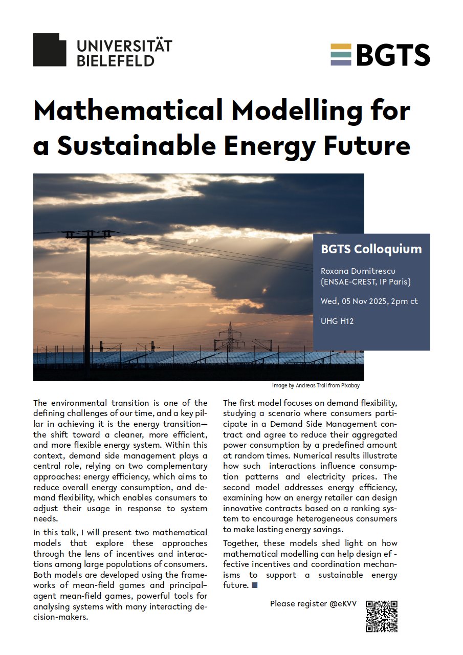 Together, these models shed light on how mathematical modelling can help design effective incentives and coordination mechanisms to support a sustainable energy future.