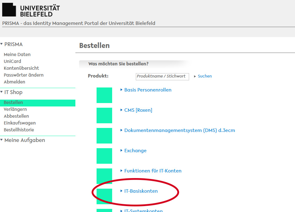 Auf https://prisma.uni-bielefeld.de mit der Uni-ID / BITS-Loginname und dem Web-Passwort einloggen.