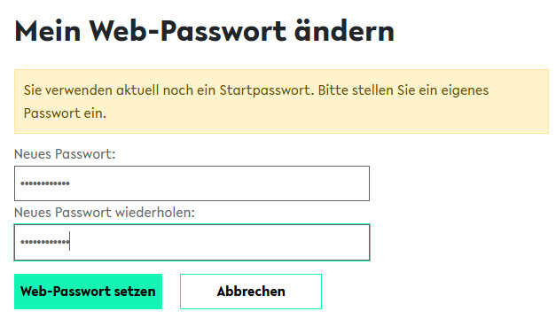Log in to https://login.uni-bielefeld.de/kv/password with the temporary (start) password.