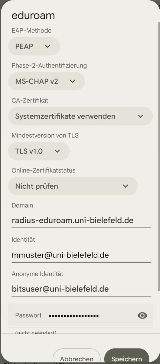 Um alle erforderlichen und aktuellen Konfigurations-Einstellungen direkt voreingestellt zu bekommen, empfehlen wir die App geteduroam. Für eine manuelle Konfiguration dient ansonsten diese Anleitung.