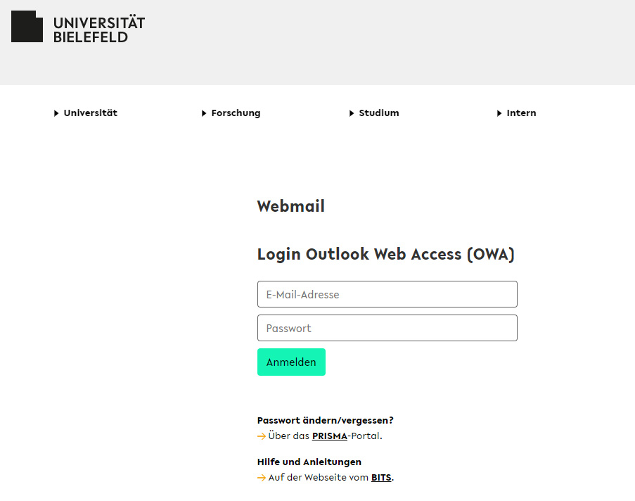 Log in to https://webmail.uni-bielefeld.de with your personal email address and BITS password.