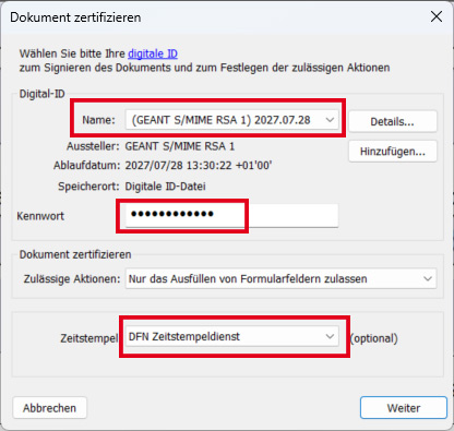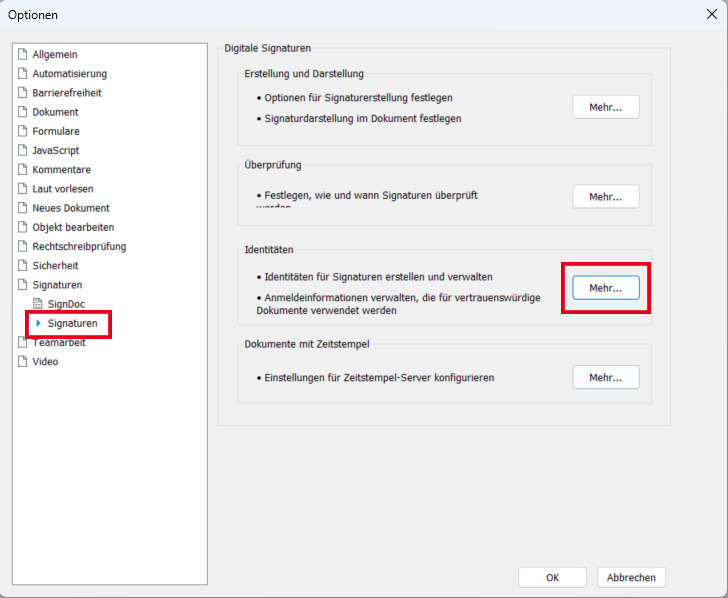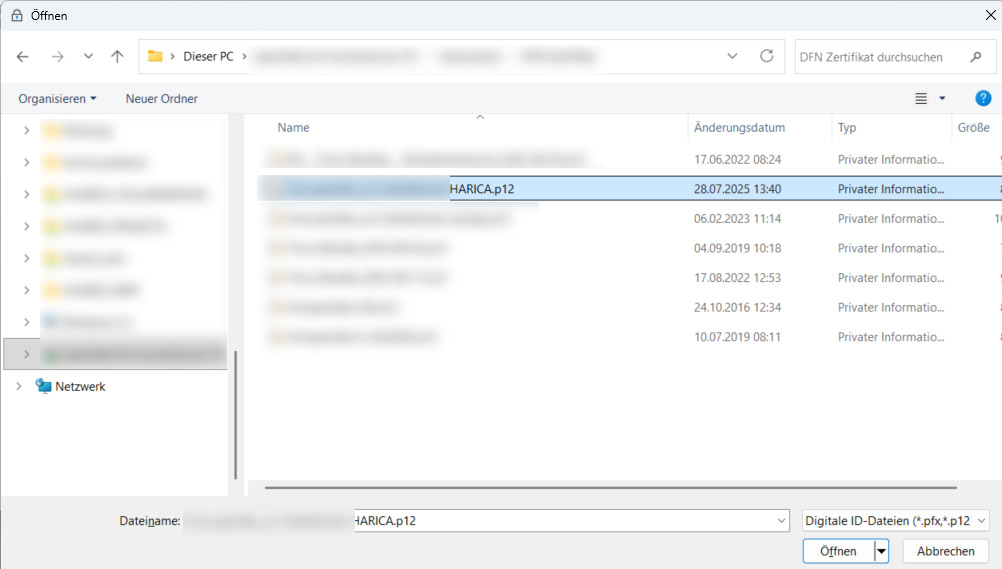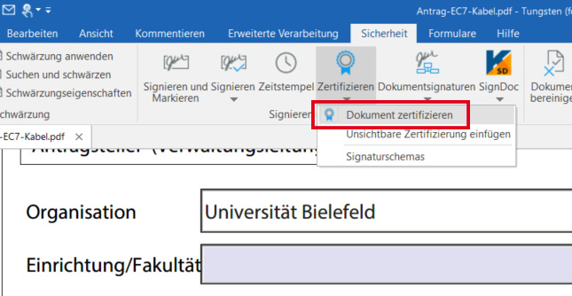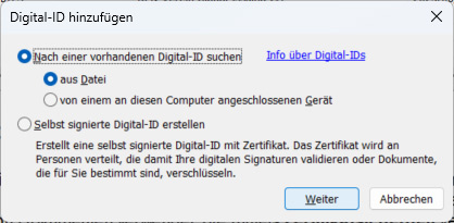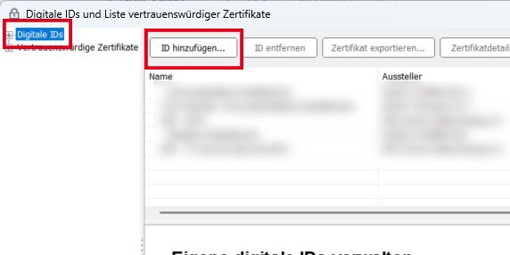 Um PDF-Dokumente digital mit einem Zertifikat unterschreiben zu können, muss ein persönliches, digitales Zertifikat vorhanden sein (.p12-Datei).