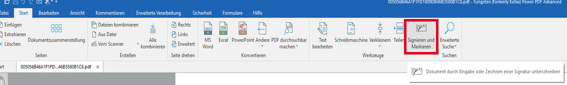 Wenn sich kein Browserfenster von selbst öffnet, bitte einen aktiven Browser öffnen und ggf. die unterschiedlichen Fenster/Tabs nach der Power PDF-Seite absuchen.