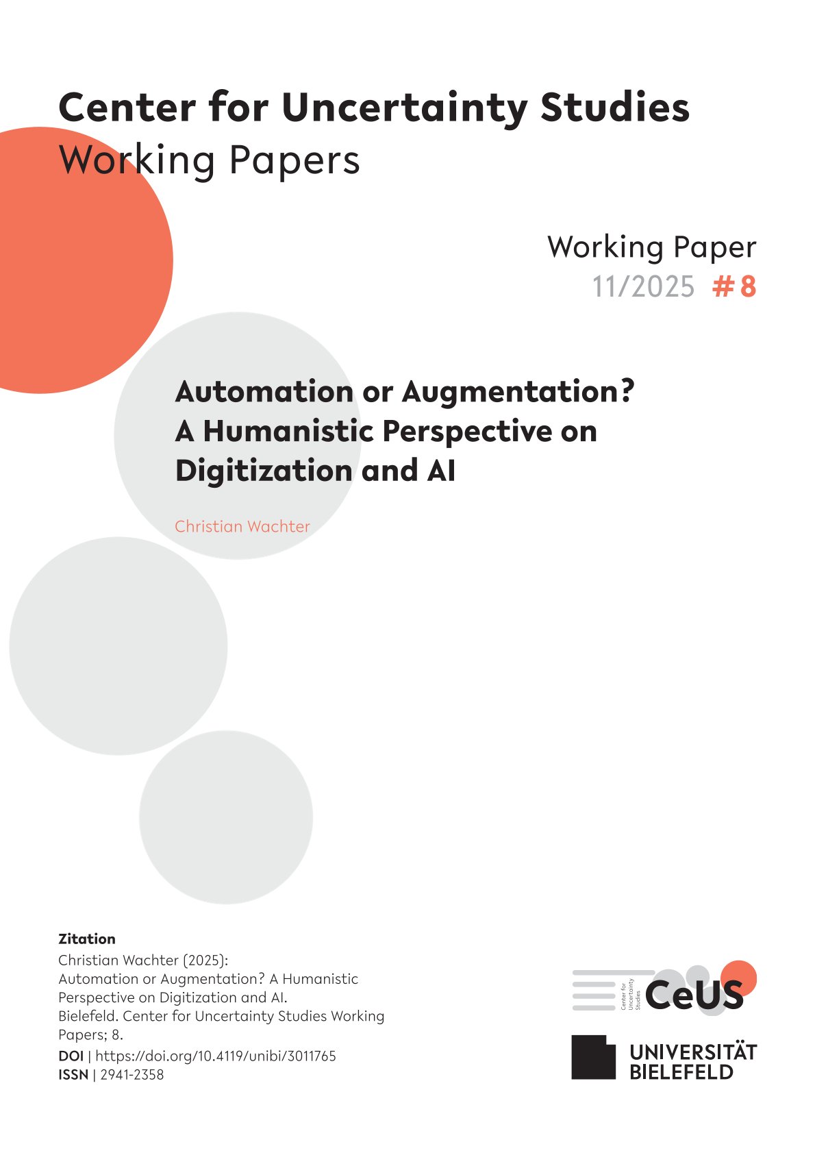 Christian Wachter (2025). Automation or Augmentation? A Humanistic Perspective on Digitization and AI (Center for Uncertainty Studies Working Papers; 8.). Bielefeld: Universität Bielefeld, Center for Uncertainty Studies (CeUS). https://doi.org/10.4119/unibi/3011765