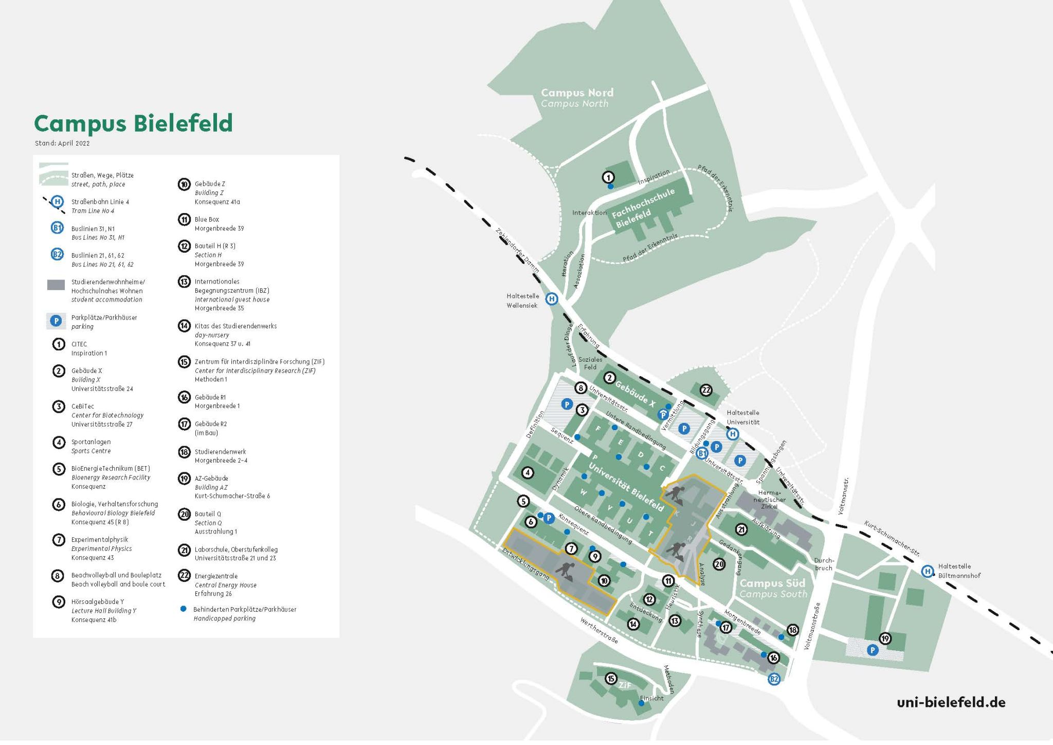 Lage- und Gebäudepläne der Universität Bielefeld