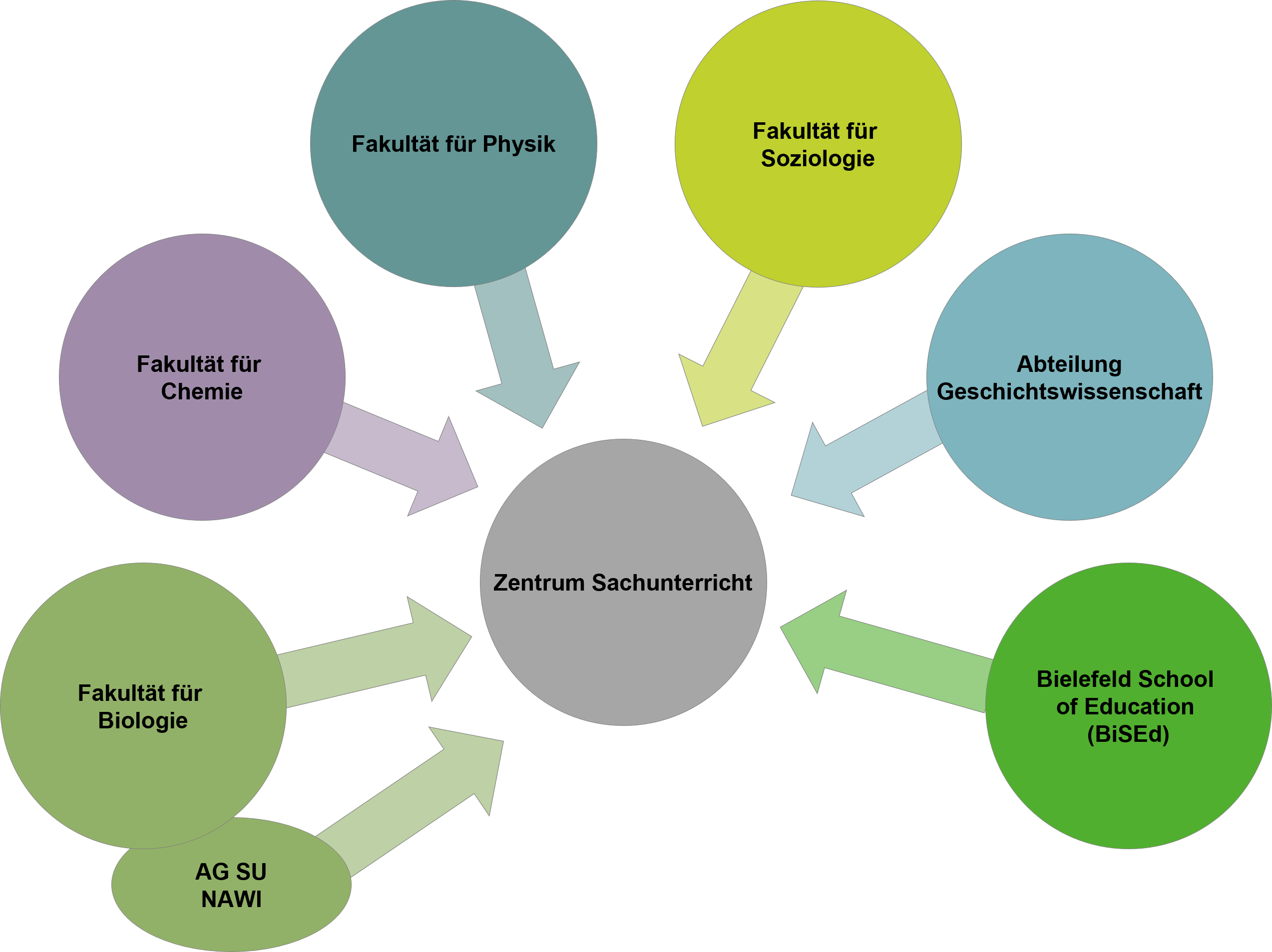 Die seit vielen Jahren bestehende Zusammenarbeit der Natur- und Gesellschaftswissenschaften aus den Bereichen Biologie, Chemie, Physik, Geschichtswissenschaft und Sozialwissenschaften sowie der Bielefeld School of Education wird im gemeinsam getragenen Zentrum sichtbar.