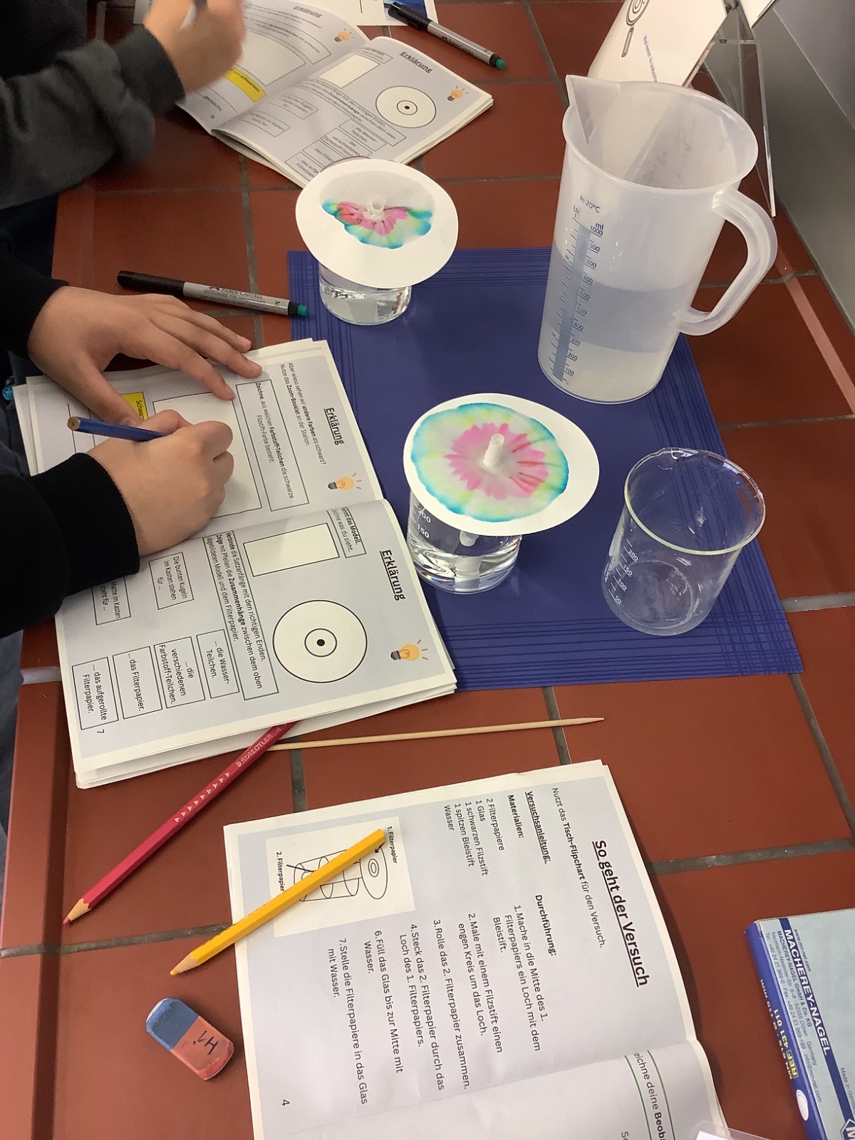 Am 24. Februar besuchte uns eine sechste Klasse der Martin-Niemöller Gesamtschule, um einen Vormittag voll chemischer Versuche unter dem Motto "Partychemie" zu verleben. Die Schüler*innen klebten Girlanden mit denaturierter Milch, färbten eine Brause um, mixten Cocktails und gestalteten Untersetzer mittels Chromatographie. Mit Modellen der Teilchenebene wurden die Versuche dann auch chemisch erklärt. Dank der fantastischen Mitarbeit verschiedener Student*innen war der Tag ein voller Erfolg, der so viel Spaß bereitet hat, dass wir die Klasse und ihre Lehrerin Eike Simonowski im Sommer noch einmal bei uns willkommen heißen können. Eike hat ihr Studium selbst bei uns verlebt, weshalb wir uns umso mehr gefreut haben, sie bei uns begrüßen zu dürfen.