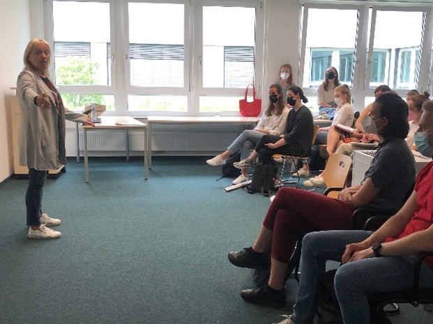 Am 07.07.2022 fand in der Lernwerkstatt ein Workshop zum Thema Sprechen und Stimme statt. Mit Hilfe verschiedenster Übungen hat die Diplom- und Theaterpädagogin Cornelia Rössler die Studierenden dabei unterstützt ihre Stimmen zu schulen und lebendig zu erzählen, beziehungsweise vorzulesen. Nach einigen Lockerungsübungen zum Aufwärmen der Stimmbänder und Gesichtsmuskulatur, folgten die ersten Sprechübungen. Das deutliche Sprechen wurde durch das laute Vorlesen von verschiedenen Zungenbrechern trainiert. Anschließend wurden die Aussprache und die Betonung anhand unterschiedlicher Texte, wie zum Beispiel Rezepten, Märchen oder auch Dialogen erprobt.