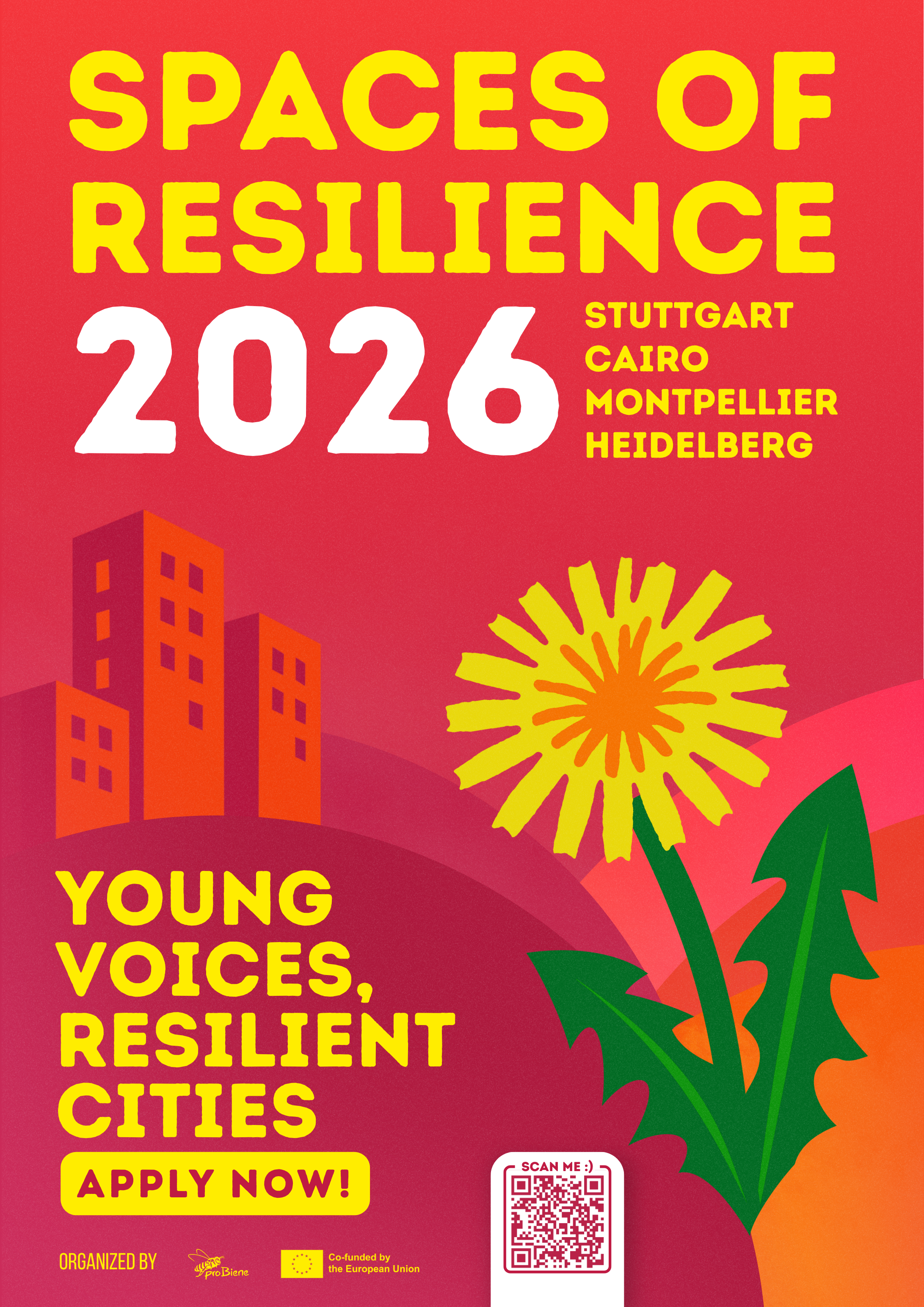 Der Stuttgarter Verein "proBiene" veranstaltet in Kooperation mit ACTS (Kairo) den durch das ERASMUS+ Programm geförderten Workshop "Creating Spaces of Resilience with Young People - International Training on Community Spaces, Youth Participation and Urban Resilience", welcher anteilig in Stuttgart und in Kairo stattfindet. Der Workshop richtet sich insbesondere an Studierende der Erziehungswissenschaft mit einem Schwerpunkt in Sozialer Arbeit.