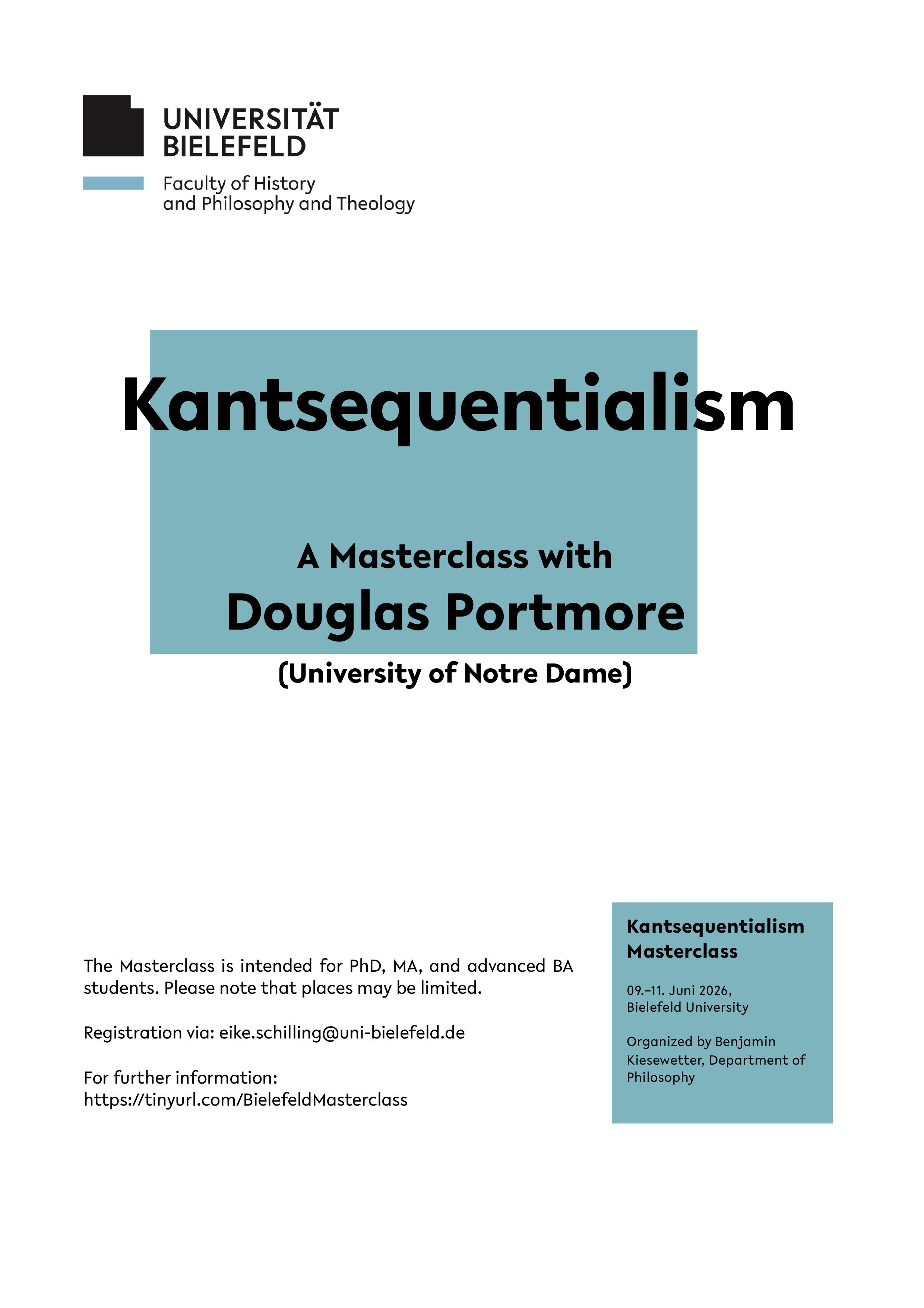 Both the masterclass and the preparatory course will be based on Douglas Portmore’s manuscript, “Kantsequentialism”, available for download at https://sites.google.com/site/dwportmore/kantsequentialism-a-morality-of-ends.