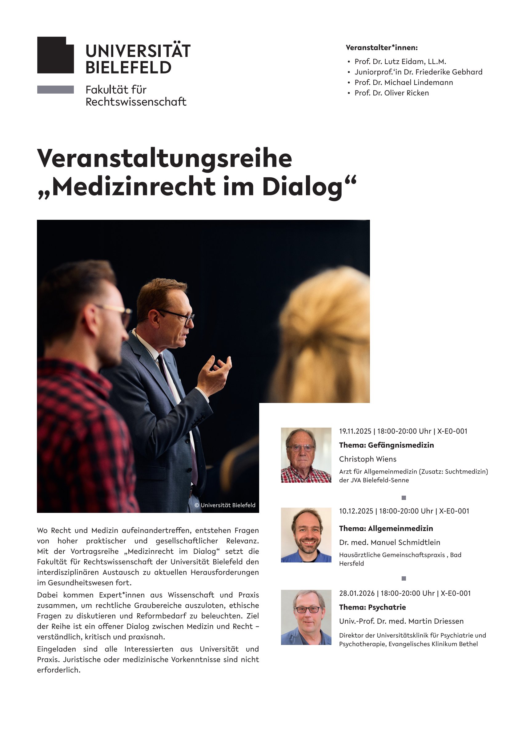 Am 21. September 2018 haben Prof. Dr. Lutz Eidam, LL.M. und Prof. Dr. Michael Lindemann gemeinsam mit dem Palliativnetz Bielefeld e.V. eine interdisziplinäre Tagung zum Thema „Grundfragen und aktuelle Herausforderungen der ärztlichen Sterbebegleitung“ veranstaltet. Eine kurze Dokumentation, das seinerzeitige Tagungsprogramm und ein paar Bilder der Tagung finden Sie hier.