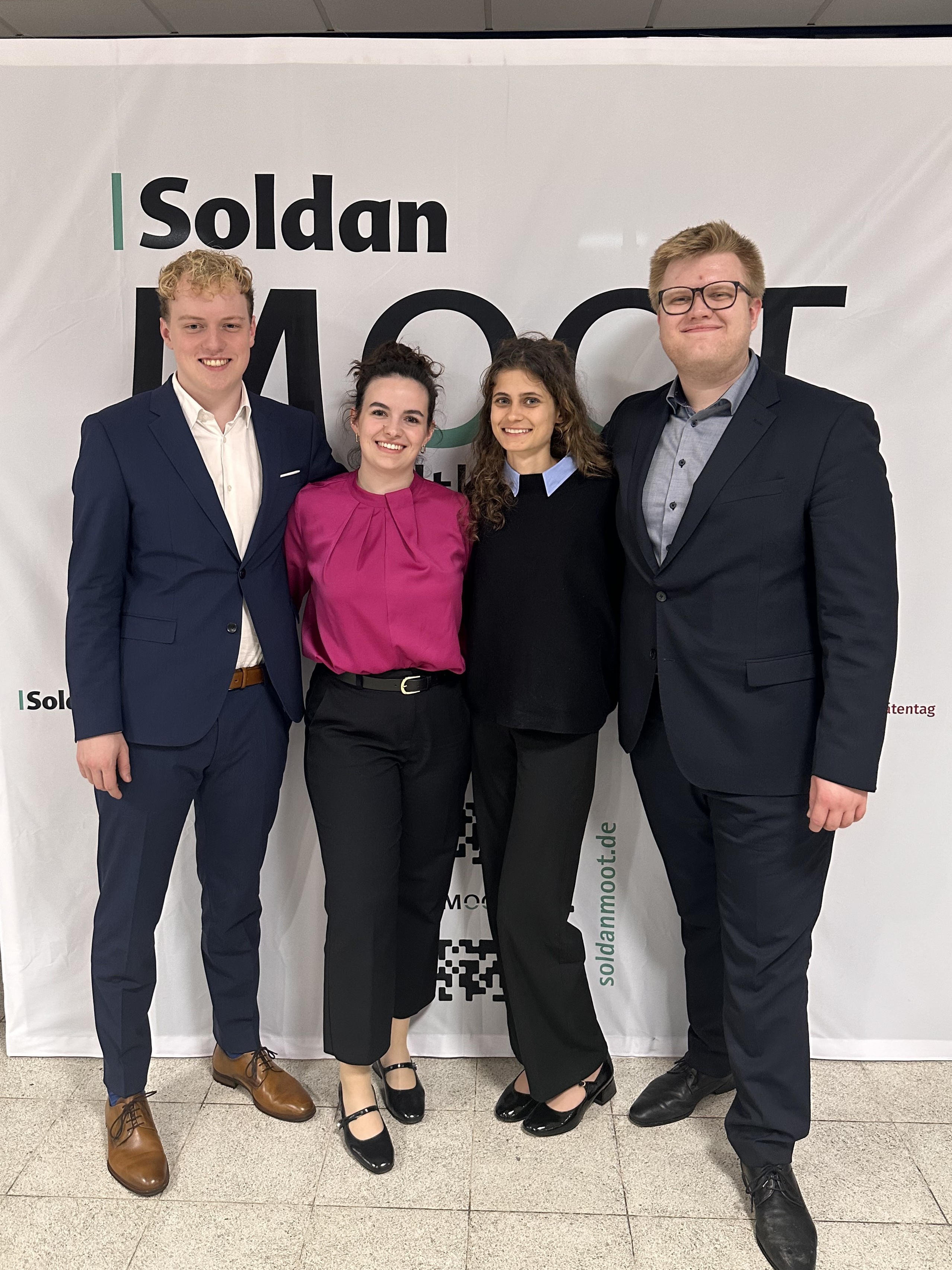 Die Universität Bielefeld hat in diesem Jahr erneut mit einem Team aus vier Studierenden am 10. Durchgang des Hans Soldan Moot zur Anwaltlichen Berufspraxis teilgenommen. Das Team bestand aus Bernhard Gerken, Cenk Alkan, Jasmin Diekmann und Tim Fuhlrott, die von Prof. Dr. Lutz Eidam, LL.M., Jonas Koschmieder und Alexandra Heinicker betreut wurden.