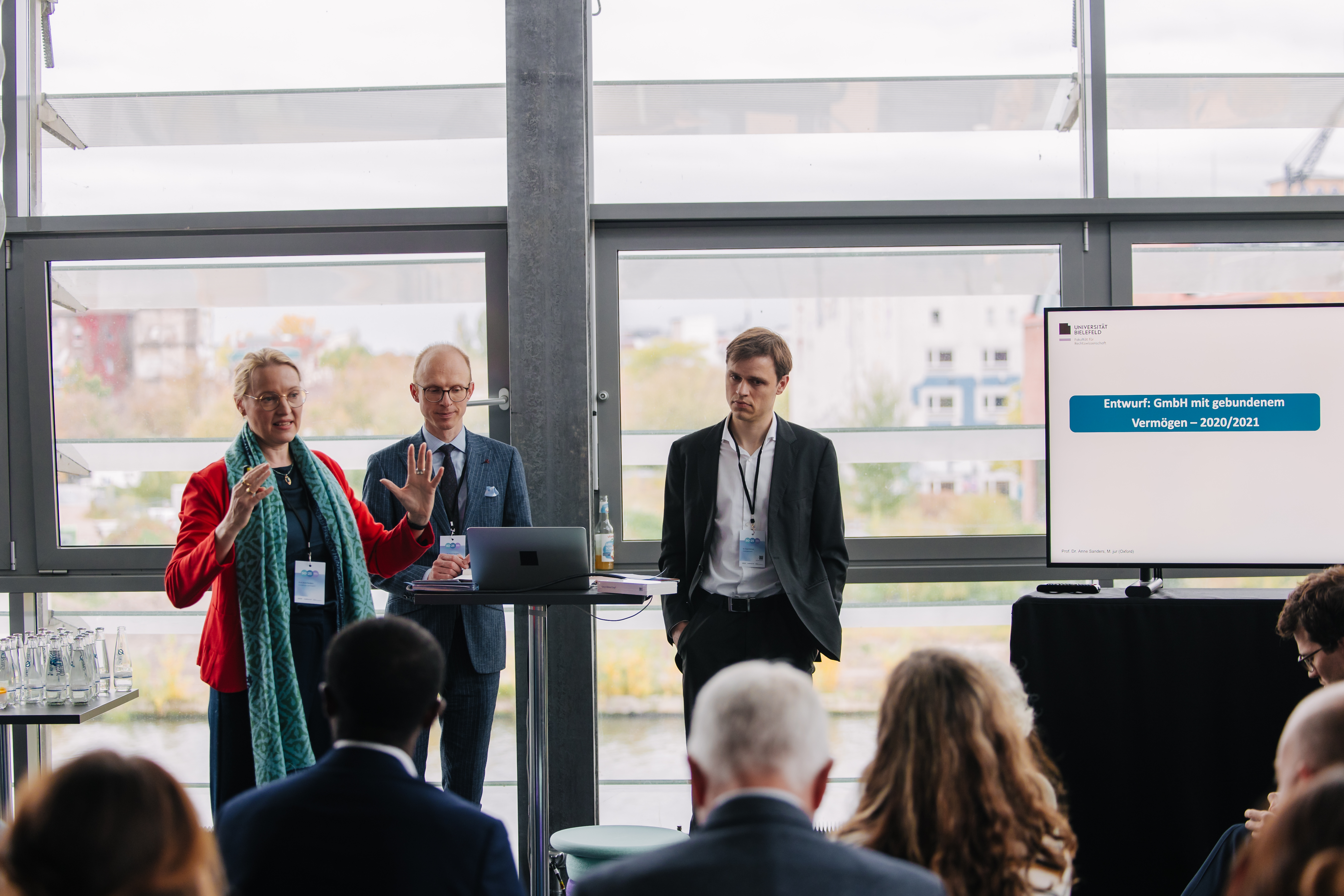 Am 9. Juli 2020 wurde in einer Videokonferenz der von Prof. Dr. Anne Sanders, M.Jur., Prof. Dr. Dr. h.c. Barbara Dauner-Lieb, Dr. Arne von Freeden, LL.M., Prof. Dr. Simon Kempny, LL.M., Prof. Dr. Florian Möslein, LL.M. und Prof. Dr. Rüdiger Veil vorgelegte Gesetzesentwurf für eine neue Rechtsformvariante der GmbH für Unternehmen in Verantwortungseigentum vorgestellt und mit Unternehmen, Ökonomen und Juristen aus Wirtschaft und Praxis diskutiert.