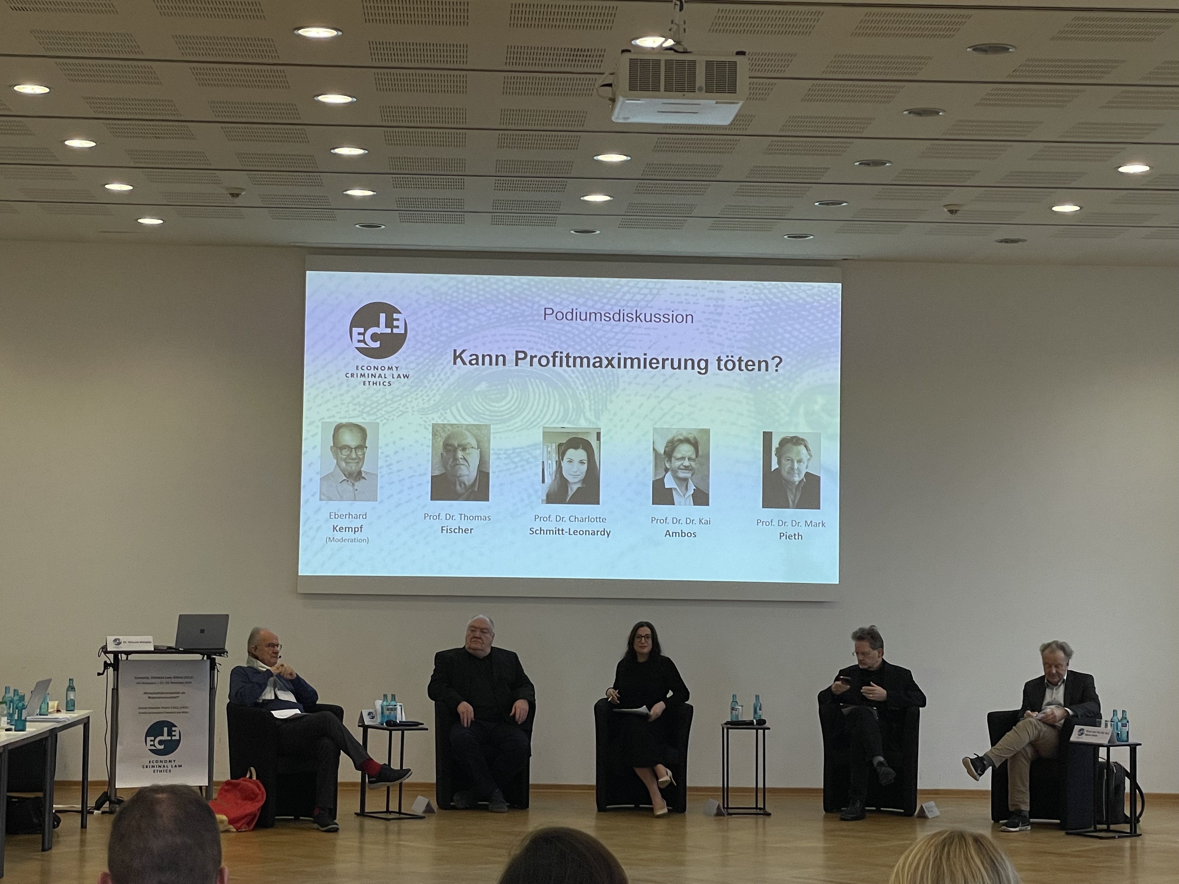 Am 22./23.11.2024 fand an der Goethe-Universität ECLE XIV zum Thema „Wirtschaftskriminalität als Makrokriminalität?“ statt. Erstmals wurde das Symposion durch eine universitätsöffentliche Podiumsdiskussion unter dem Titel „Kann Profitmaximierung töten“ ergänzt. Hierfür wurde die diffizile Frage in den Mittelpunkt gestellt, ob und inwiefern (ungezügelte) Profitmaximierungstendenzen schwere Rechtsgutsverletzungen bedingen können.