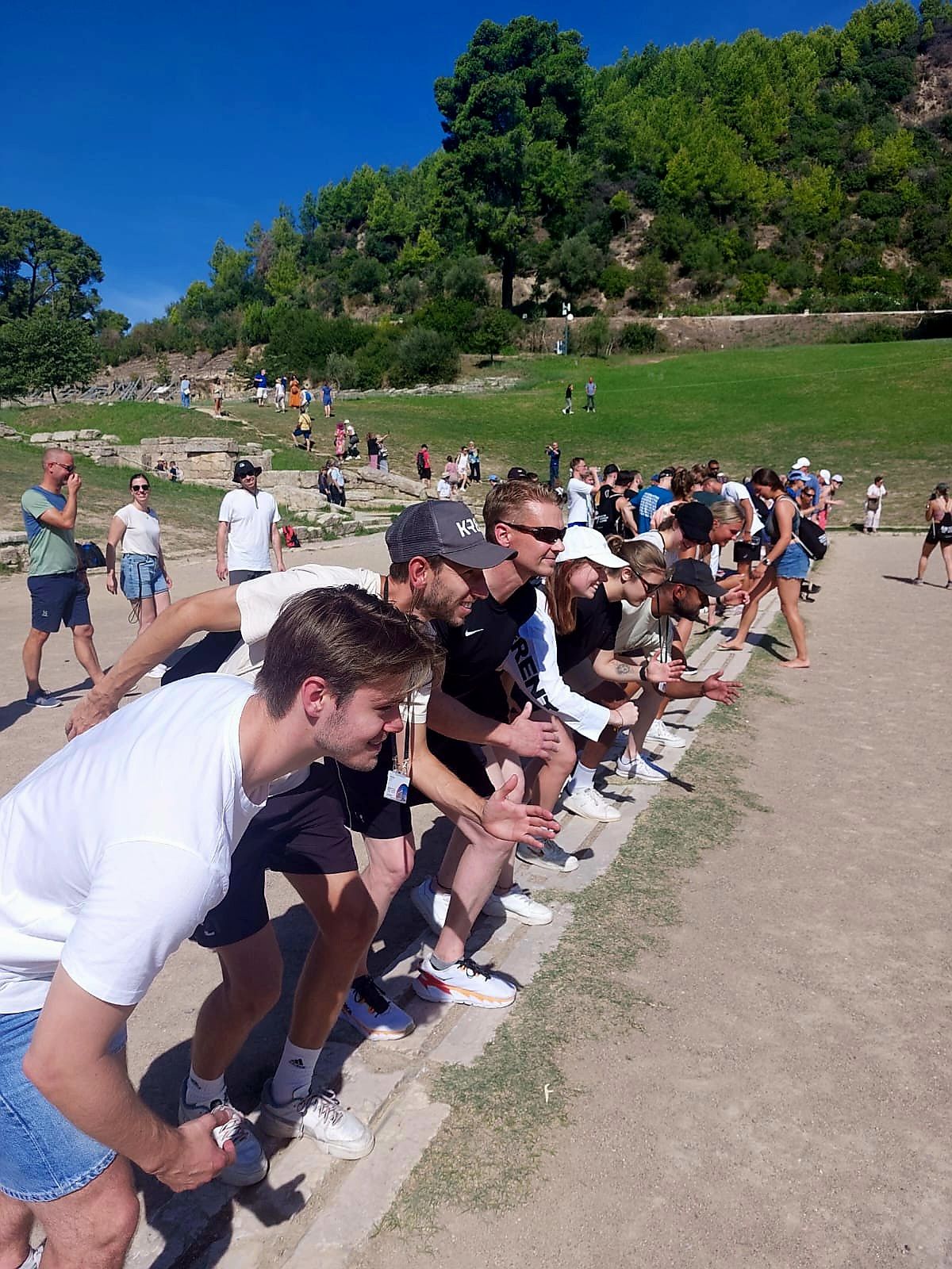 Auf Einladung der Deutschen Olympischen Akademie reiste eine Gruppe von 7 Studierenden unter der Leitung von Dr. Stefan Pfaff vom 10.9. bis zum 18.9.2023 ins Tagungszentrum der Internationalen Olympischen Akademie nach Olympia (Griechenland). Auf dem Programm standen die Themen Nachhaltigkeit von Olympischen Spielen, Governance, olympische Werte und Historie der antiken Spiele. Hierzu gab es spannende Vorträge von Referent*innen wie Georgina Grenon (Direktorin Ökologie der Olympischen Spiele Paris 2024), Holger Kühner (Sportchef vom SWR), Prof. Dr. Dionyssis Gangas (IOA, Olympic Political Diplomacy) und einigen mehr. Diese wurden durch aktive Formate wie Debating, Gruppenstreitgespräche und Kleingruppendiskussionen der Studierenden kritisch reflektiert und am Ende präsentiert. Neben diesem mehrtägigen Programm im Tagungszentrum stand der Besuch historischer Stätten antiker Spiele im Fokus. Bei den Besuchen in Epidauros, Delphi, dem panathenäischen Stadions in Athen und dem antiken Olympia bekamen die Studierenden durch die fachkundige Führungen der Sporthistoriker Prof. Manfred Lämmer (Deutsche Olympische Akademie) und Dr. Ansgar Molzberger (Sporthochschule Köln) einen profunden und lebhaften Einblick in die Kultur der antiken Spiele. Der Bielefelder Delegationsleiter und Sportwissenschaftler Dr. Stefan Pfaff zog dann auch zum Abschluss eine positive Bilanz:
