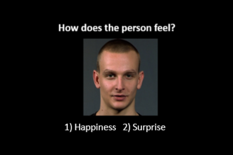 The Berlin Emotion Recognition Test (BERT) is a computer-based task for sensitively assessing emotion recognition. The BERT consists of a total of 48 photographs of facial expressions of professional actors displaying one of the six basic emotions ([1]; for stimulus production see [2]). The face is centred in front of a dark grey background. There are eight pictures per emotion, and each is expressed by four different female and four different male actors. Below each picture, two emotional words are presented, and the participant is asked how the person is feeling. Only one of the two possible options correctly describes the emotion expressed. The emotion recognition score is the percentage of correct answers. The position of the correct answer, as well as the order of the picture, is randomized.