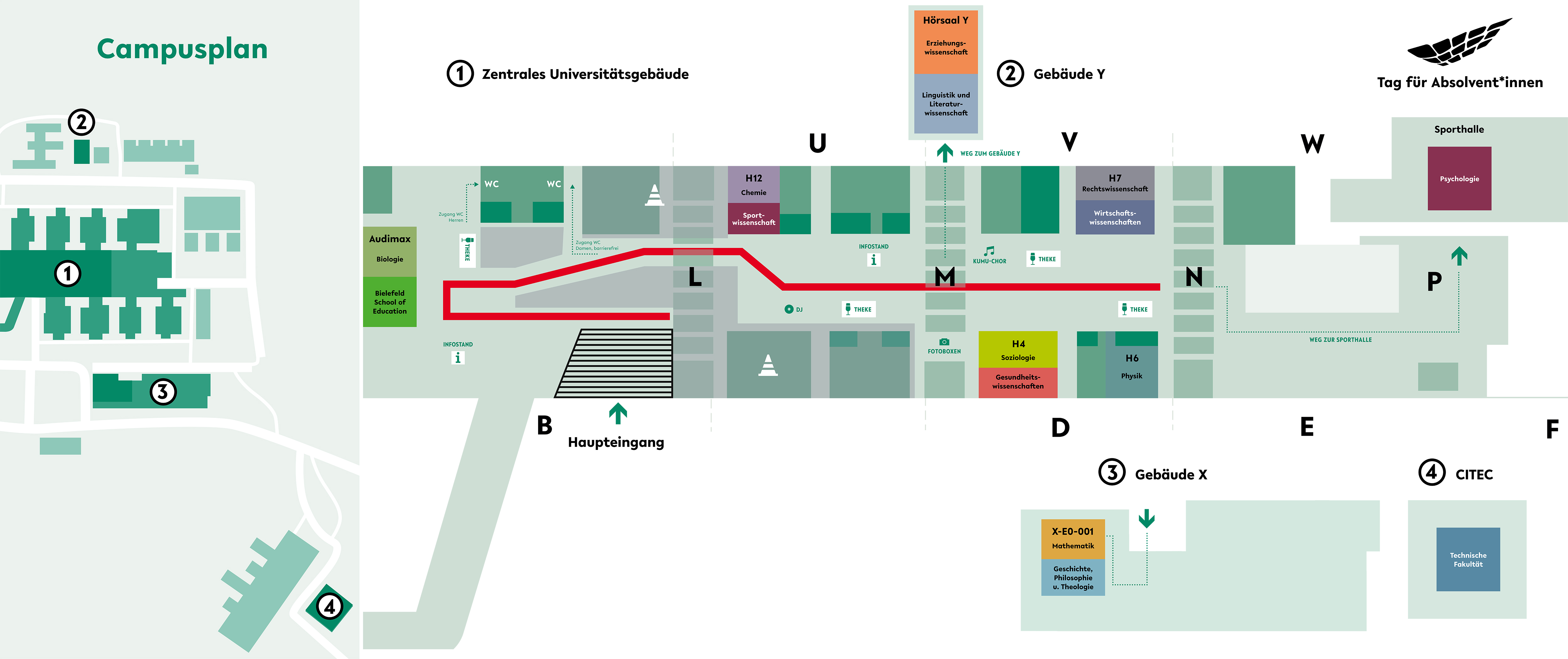 Dieser Übersichtsplan dient zur Orientieung am Veranstaltungstag. Details zu den Fakultätsfeiern (Zeiten und Programm) sind auf den folgenden Fakultätsseiten zu finden.