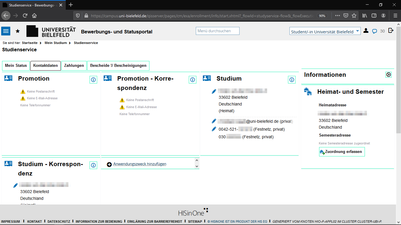 Um sicherzustellen, dass Sie wichtige Nachrichten der Universität und des Studierendensekretariates erhalten, ist es zwingend erforderlich, dass Ihre Kontaktdaten jederzeit aktuell sind.