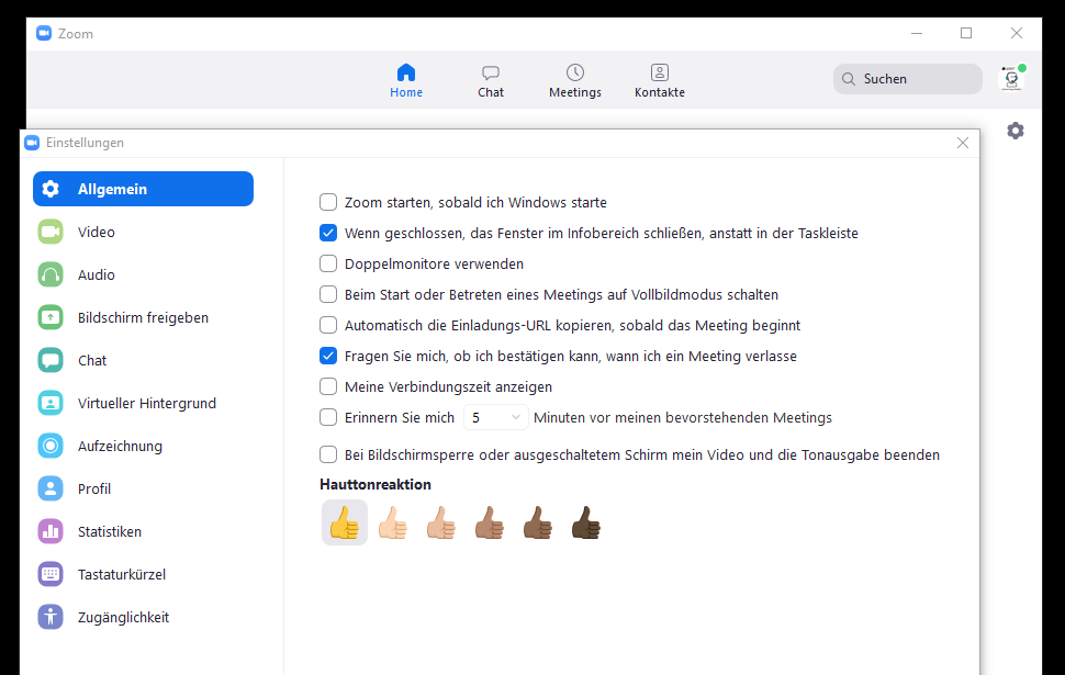2) Öffnen Sie die Einstellungen über das kleine Zahnrad-Icon, unter Ihrem Profilbild rechts oben in Zoom.