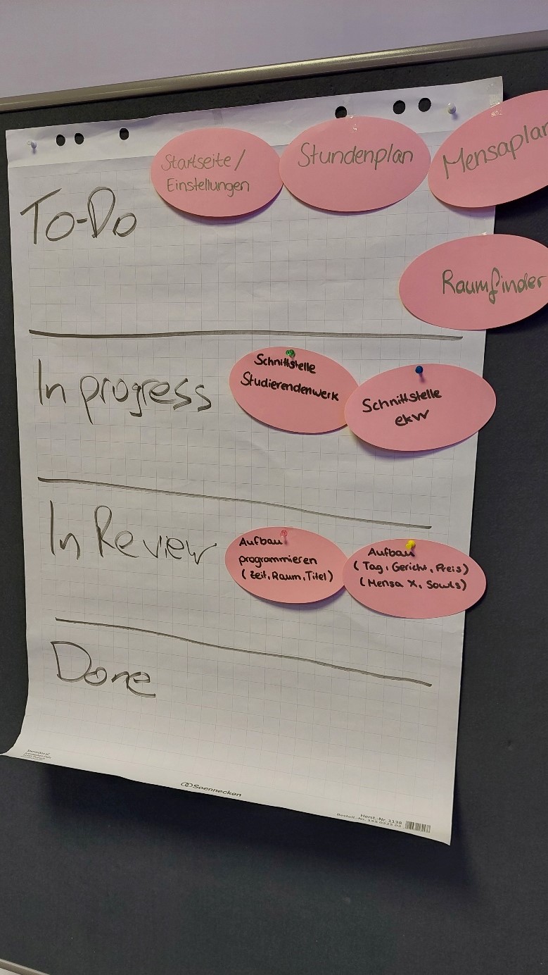 Die Stimmung zum Ende des Workshops ist positiv und sichtlich erstaunt über die schnellen Fortschritte. Einige Teilnehmende sind z. B. schon durch Hausarbeiten mit agilen Methoden in Kontakt gekommen, finden aber, dass sie den Begriff erst jetzt wirklich mit Leben füllen können.