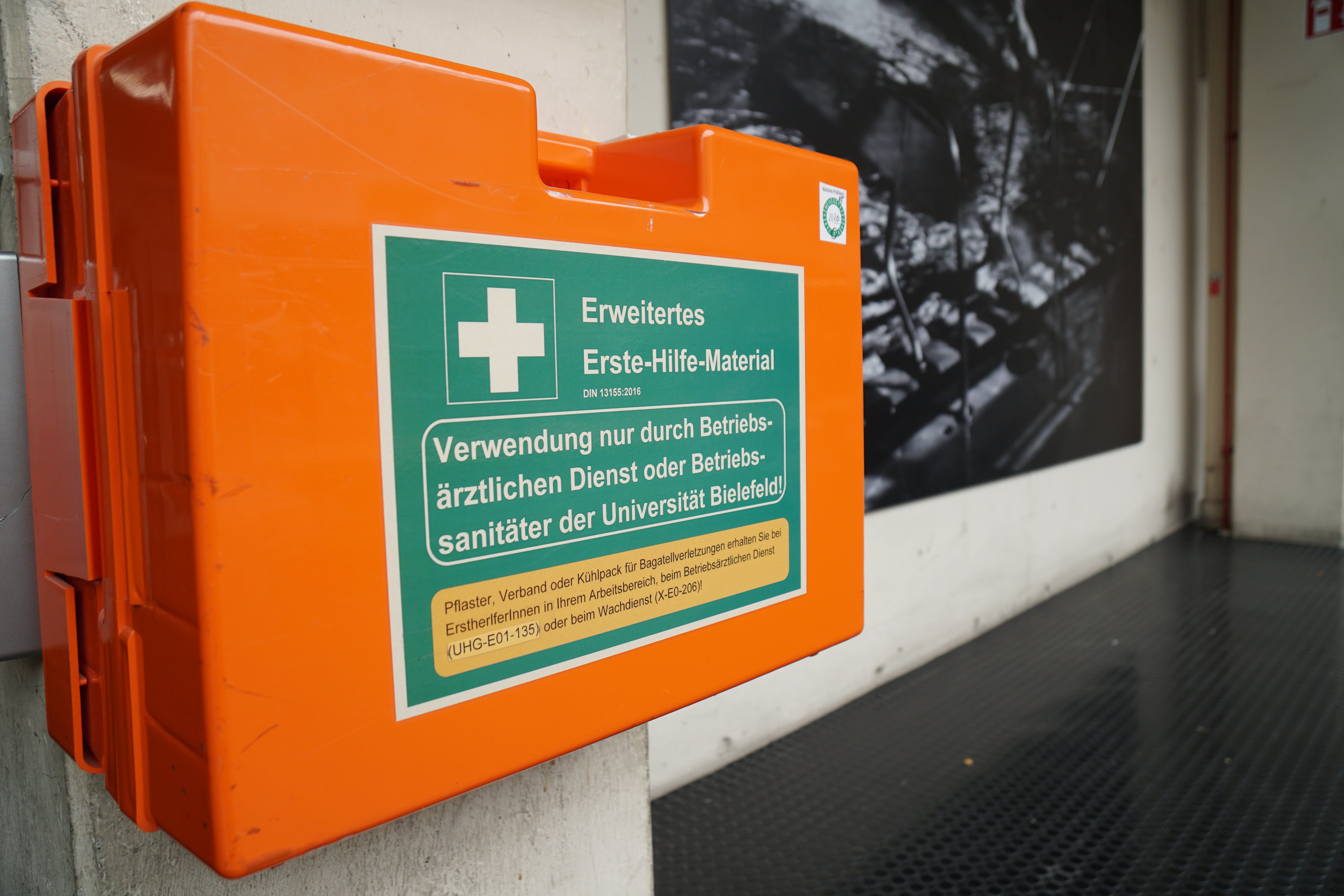 Den Betriebsärztlichen Dienst, bzw. den Sicherheitsdienst , bei dem Sie ebenfalls Pflaster, Kühlpacks o.ä. erhalten,finden Sie hier.