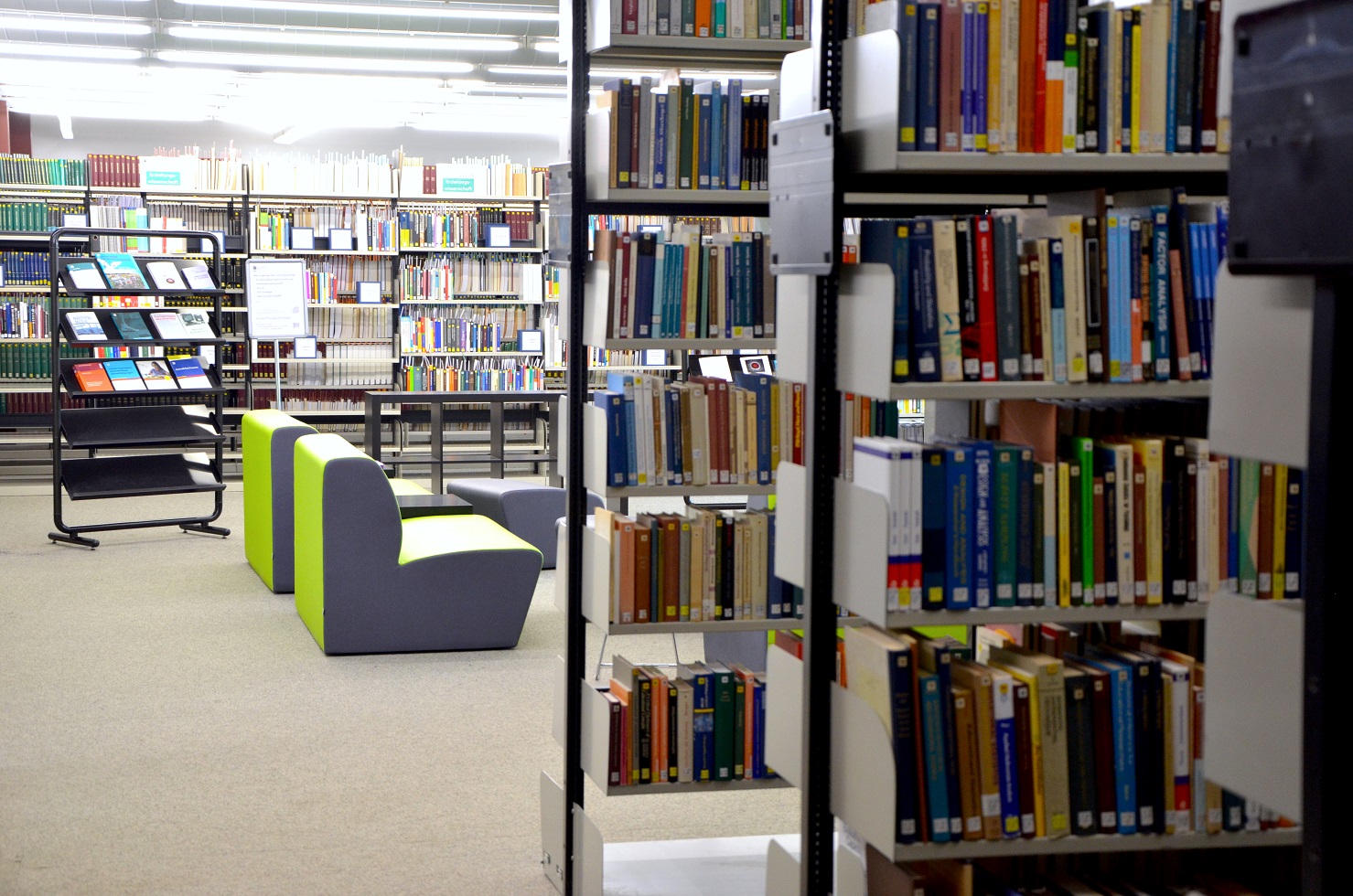 Die Fachbestände Psychologie, Erziehungswissenschaft und Musik sind aus dem Gebäudeteil T1 an den neuen Standort in U0 umgezogen. Außerdem konnten neue Arbeitsplätze eingerichtet werden. Hier ein paar Eindrücke aus den umgestalteten Bibliotheksräumlichkeiten - wir freuen uns auf euren Besuch!