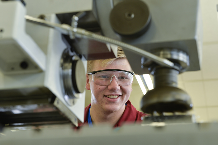 Industriemechaniker*innen werden an der Universität Bielefeld in der Mechanischen Werkstatt der Fakultät für Physik ausgebildet.