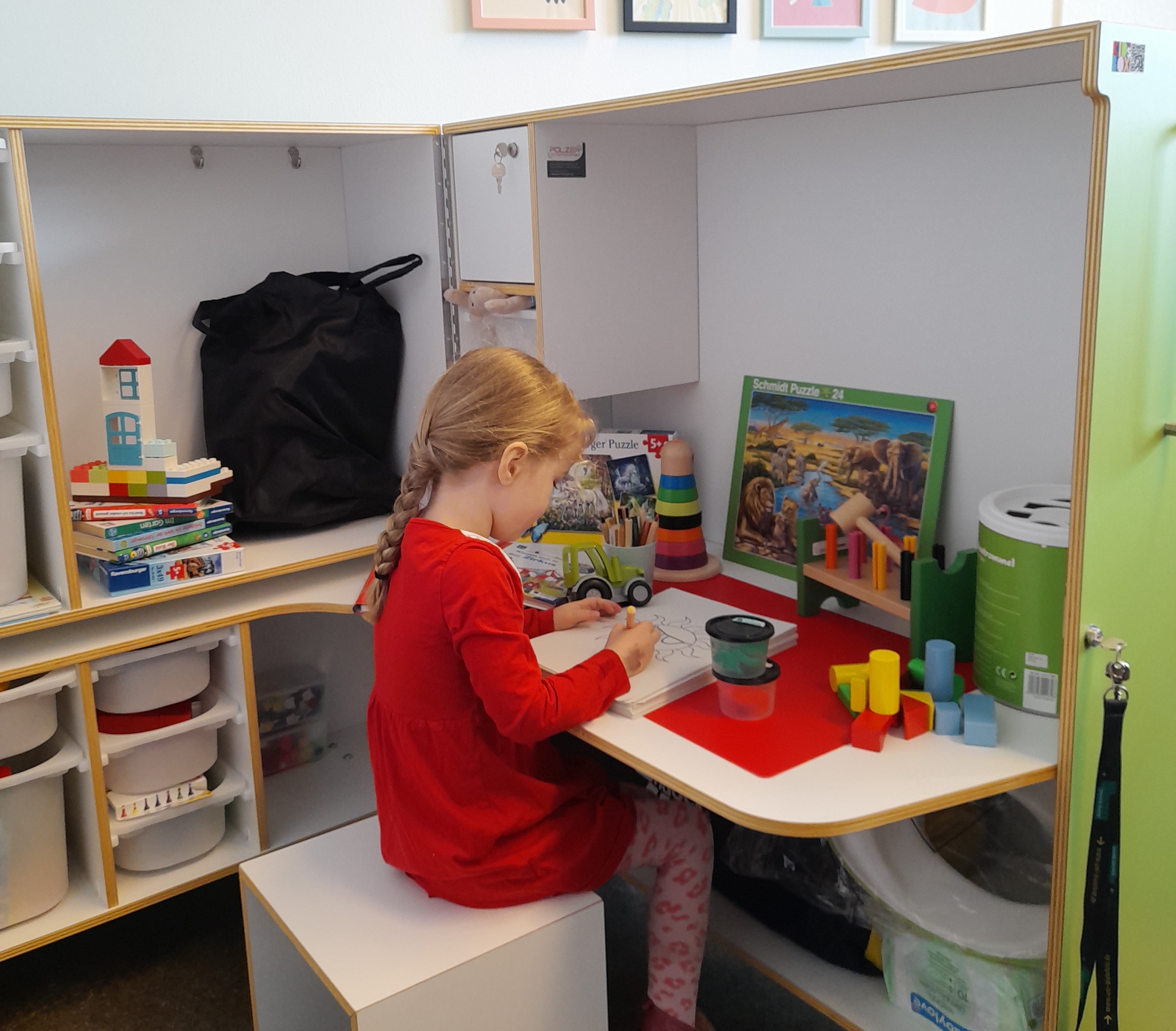 Die KidsBox ist für Babys und Kinder bis ins Grundschulalter ausgestattet. Während Ihr Kind vorübergehend altersgerecht versorgt und beschäftigt ist, können Sie wichtige Dienstaufgaben erledigen. Die gr0ße Kidsbox ist für Babys und Kleinkinder ausgestattet und die kleine Kidsbox für Kinder im Schulalter.
