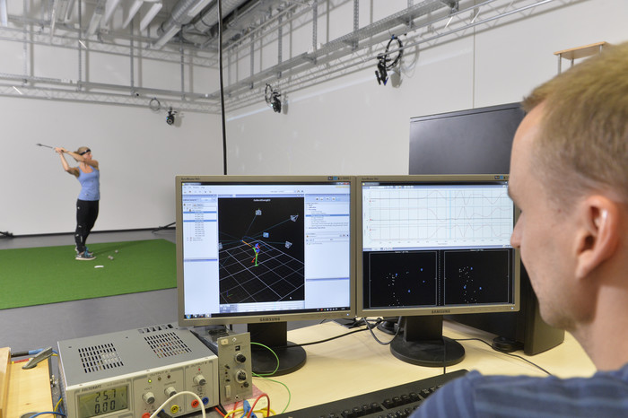 This is an L-shaped 3D stereo back-projection (passive infitec). The CAVE is exemplarily used in the ICSPACE project where it features an assistive sports scenario.